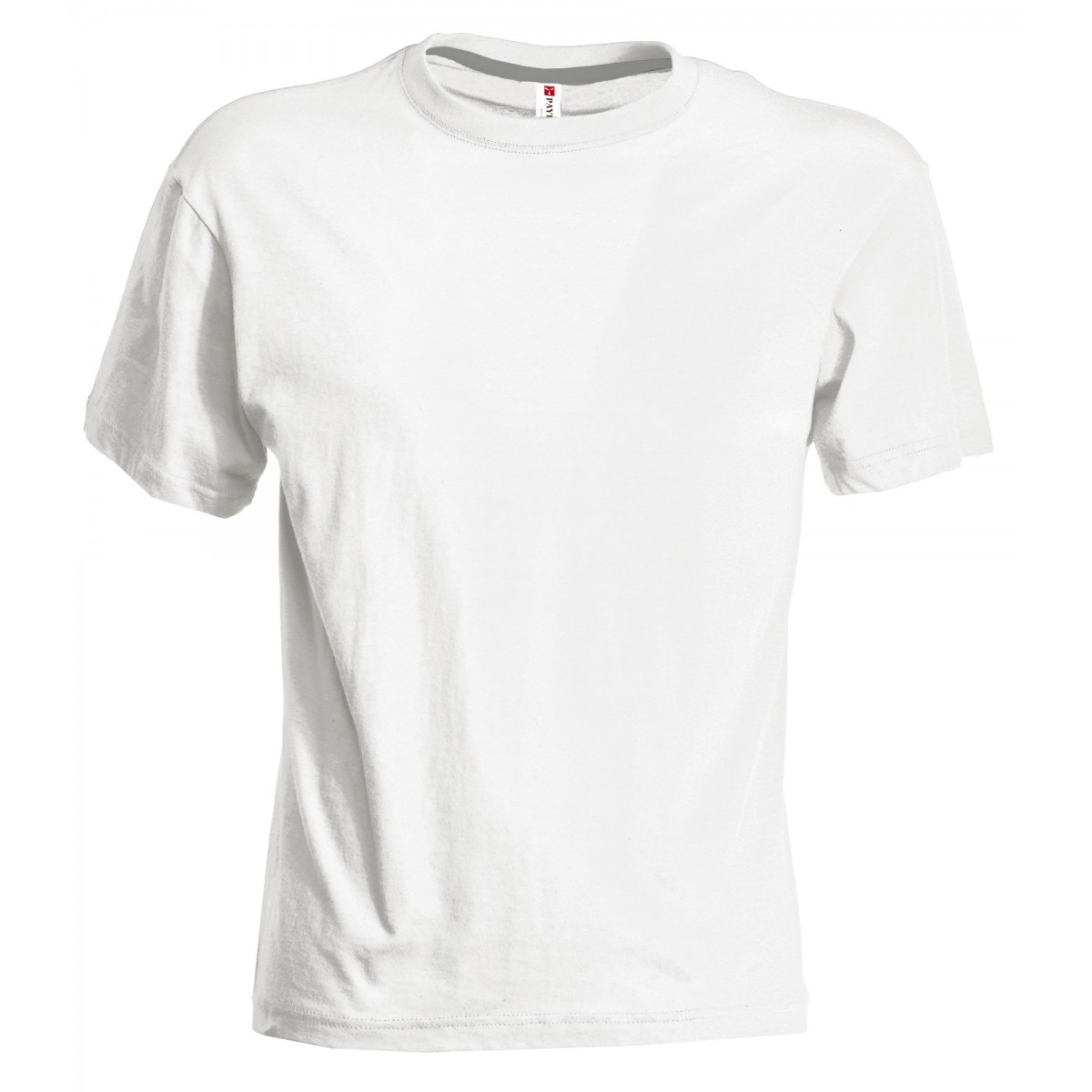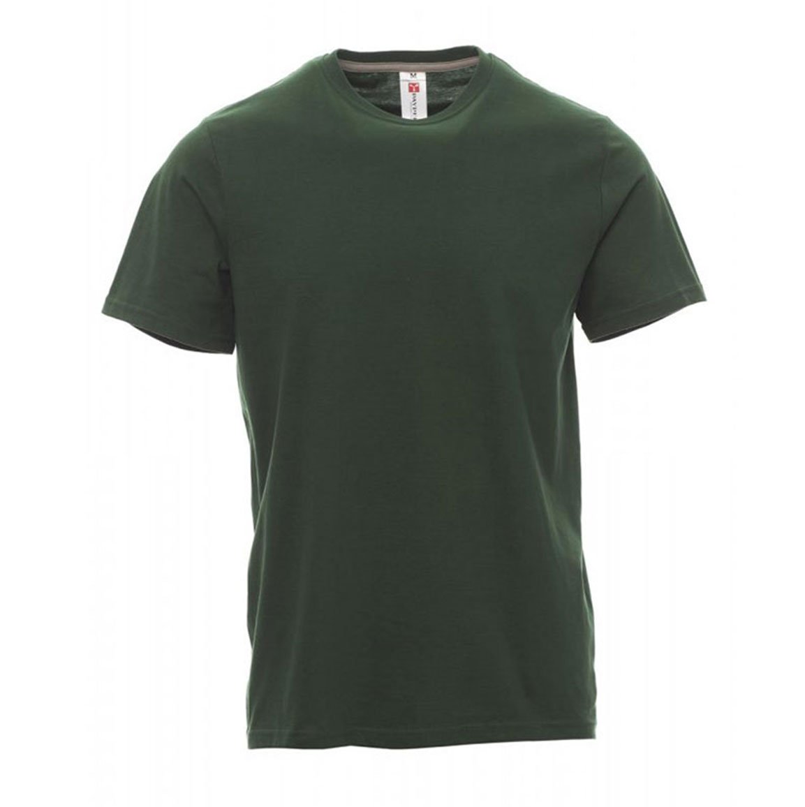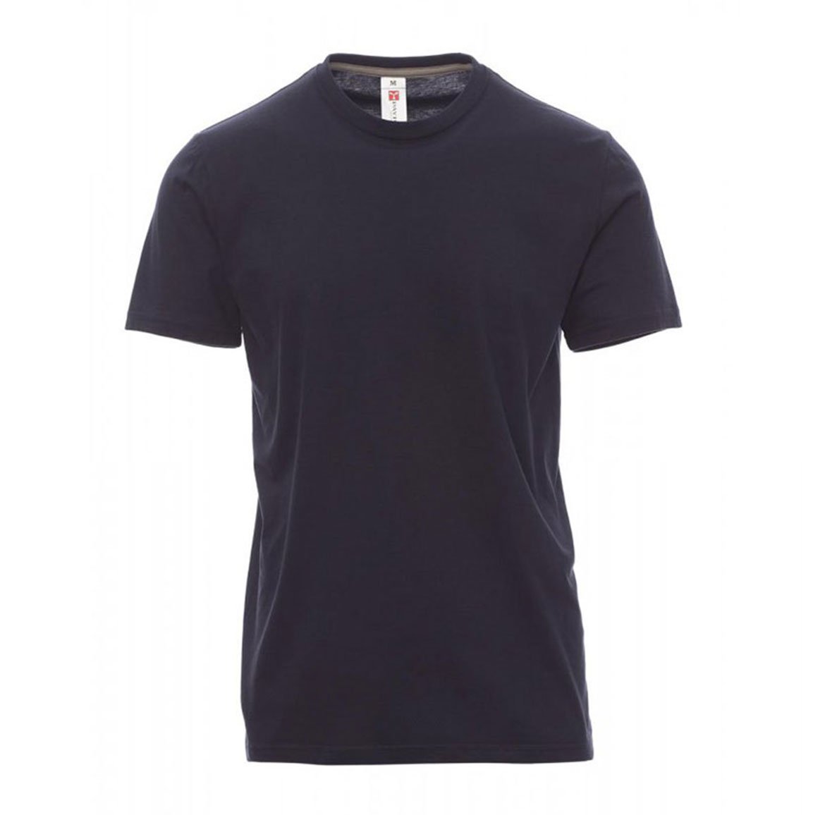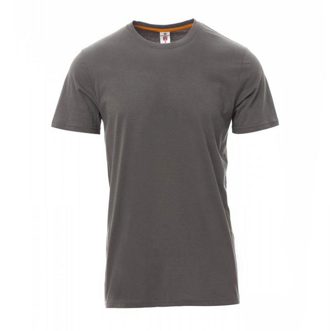 Men’s short-sleeved crew neck t-shirt, with 1.5 cm spandex mix rib neckband with top stitching on the front, contrasting shoulder-to-shoulder reinforcement tape visible on the inside collar, stretch seams, tubular design (camouflage version with side seams)