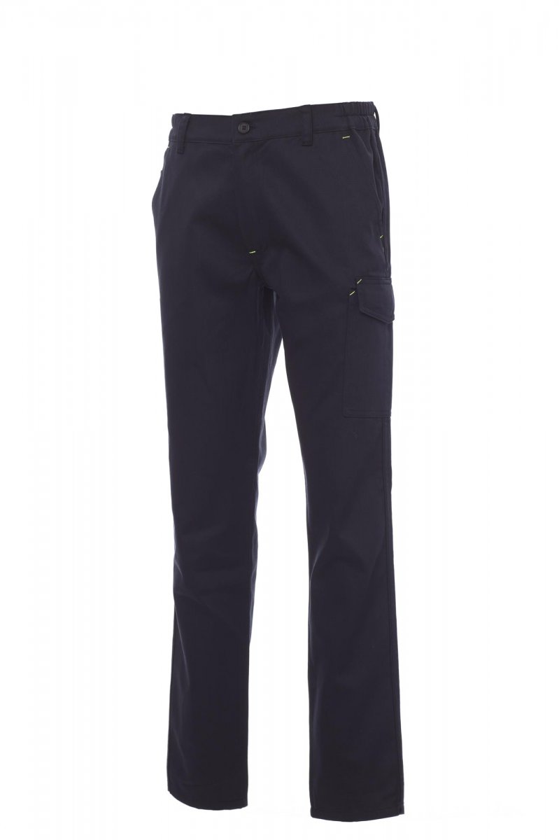 Trousers with belt loops and elastic waist, zip and button closure. Double seams on the crotch and inside leg, two classic front pockets, one coin pocket, one right side tape measure pocket, one left side pocket with LOCK SYSTEM flap closure, two back pockets, one with flap and Velcro.