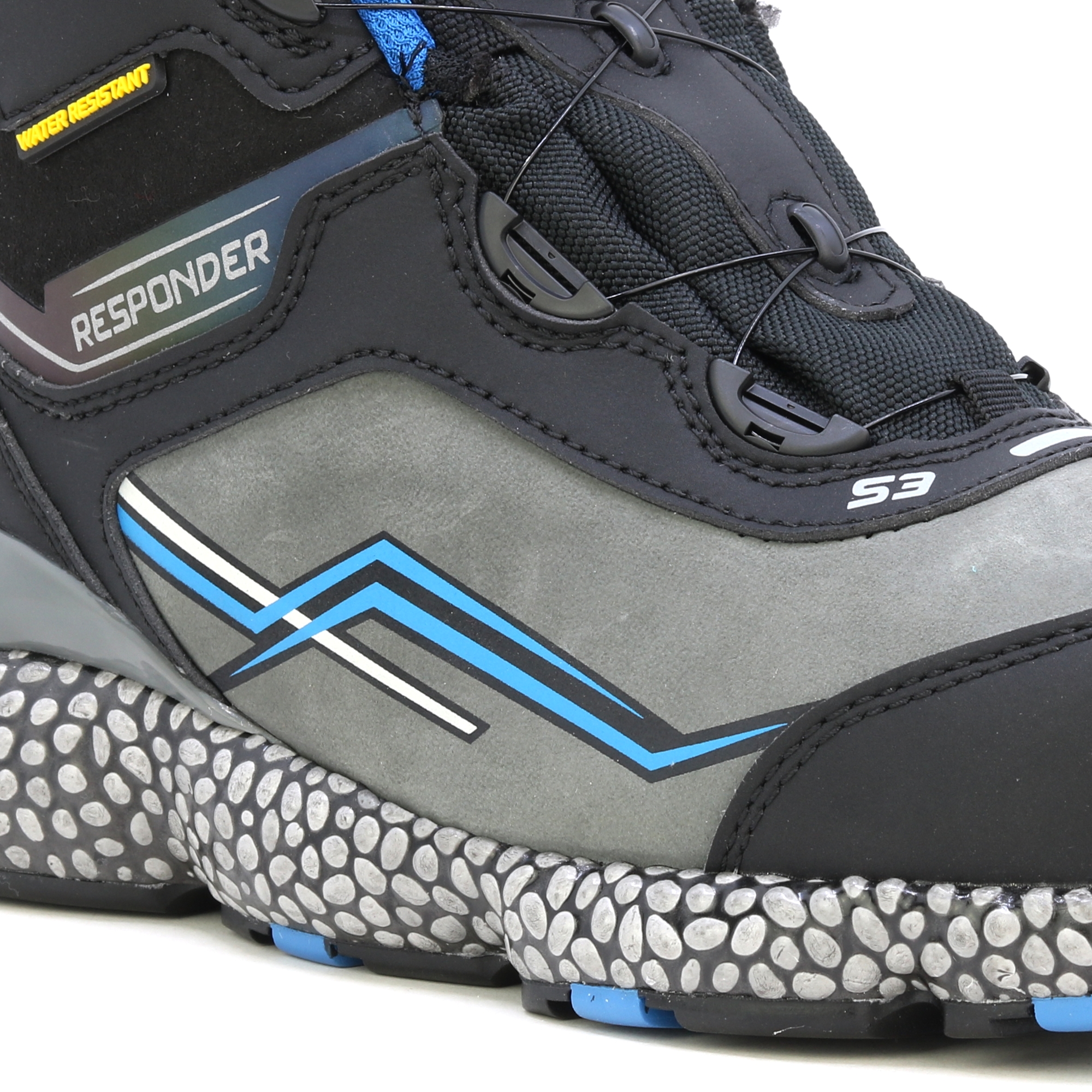 The RESPONDER insole is composed of a compound that bounds together thousands of E-TPU beads with high elasticity and resilience properties. Lined and perforated in the plantar area with outstanding anti-shock properties. Antistatic.